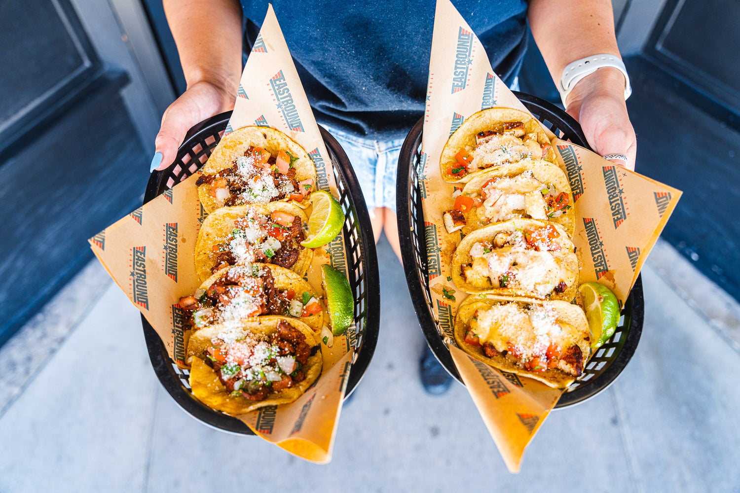 Carne asada, cotija and pico on 4 mini corn tortillas with a side of salsa